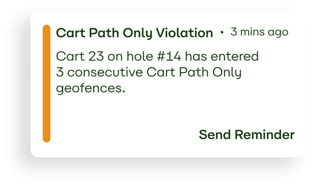 Actively maintain premium turf conditions by controlling cart traffic away from sensitive areas. Where traditional cart control systems frustrate golfers and drain staff resources, our smart geofencing technology protects your turf and prevents cart path violations through strategic messaging.